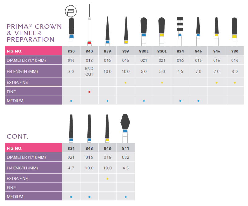 Accurate tooth preparation for a wide range of crown and bridge restorations, veneers and onlays