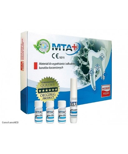 MTA+ Mini is a Bioceramic dental material from Cerkamed designed for filling and rebuilding root canals, used in cases like root perforations, internal resorption, apexification, and direct pulp capping. It contains calcium compounds that promote remineralization and tissue regeneration, creating a protective, biocompatible barrier within the root canal.