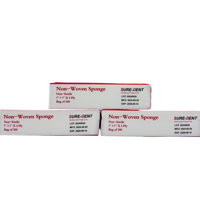 • SURE-DENT Non-Woven Sponge (Guaze Piece) 2″ x 2″ 4-Ply, Non-Sterile – Ideal for dental and medical use, offering excellent absorbency and durability.