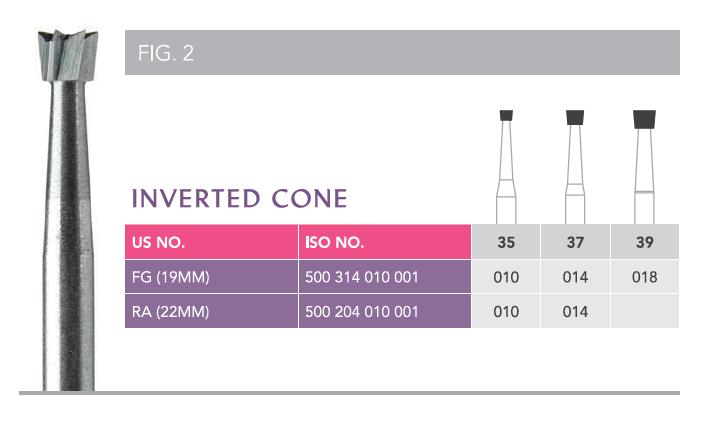 Our Prima® Classic inverted cone carbide burs are used primarily for producing undercuts at the junction of the pulpal floor and lateral walls in occlusal (class 1) cervical (class IV) cavities and the occlusal locks of the class II cavities.