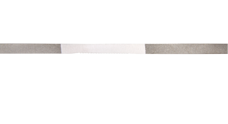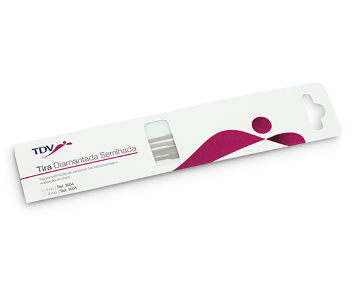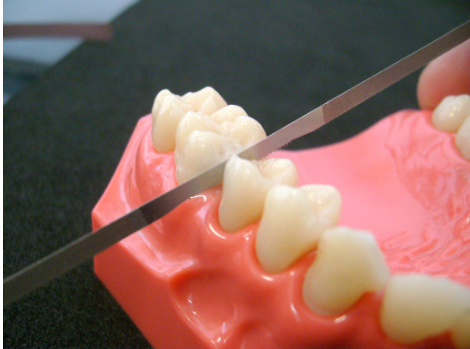 Stainless steel strip for interdental excesses removal and orthodontic stripping.