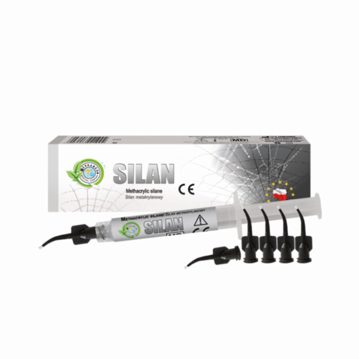 SILAN is applied on porcelain after etching, before using bonding system in order to increase the durability of bonding between resin and porcelain. The product can be used for silanizing the glass fibres.